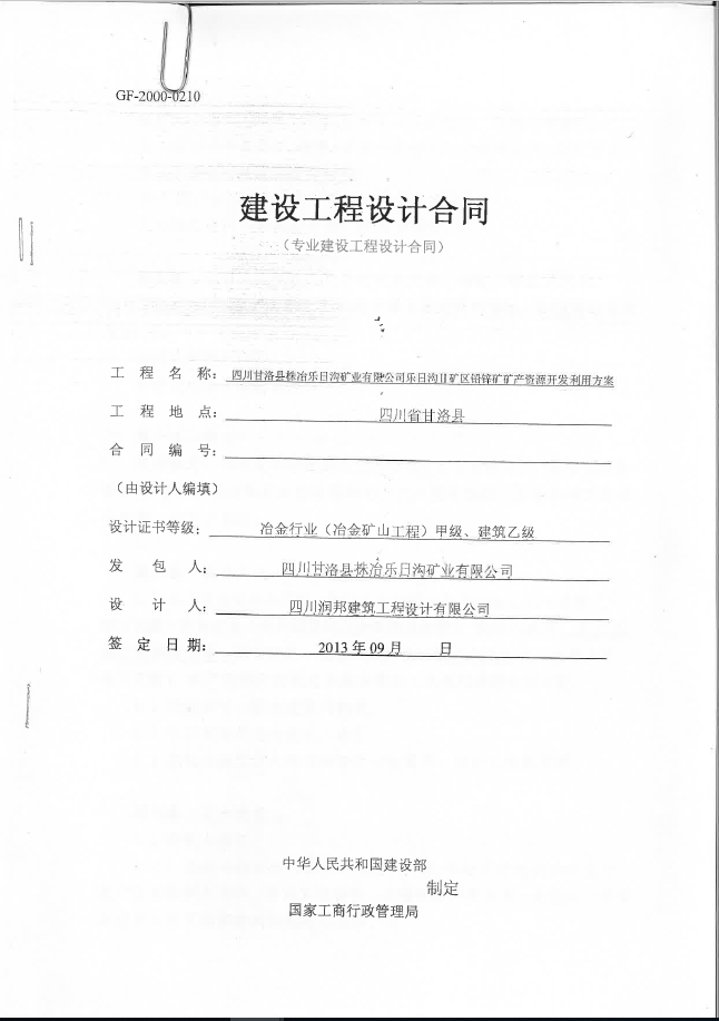 四川甘洛縣株冶樂日溝礦業(yè)有限公司樂日溝Ⅱ礦區(qū)鉛鋅礦礦產(chǎn)資源開發(fā)利用方案