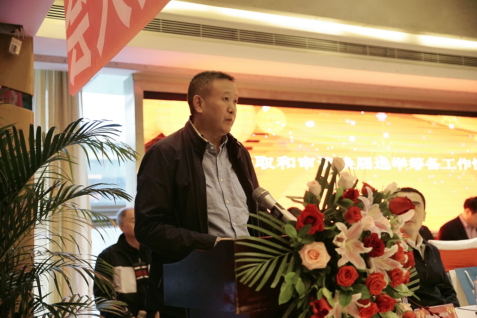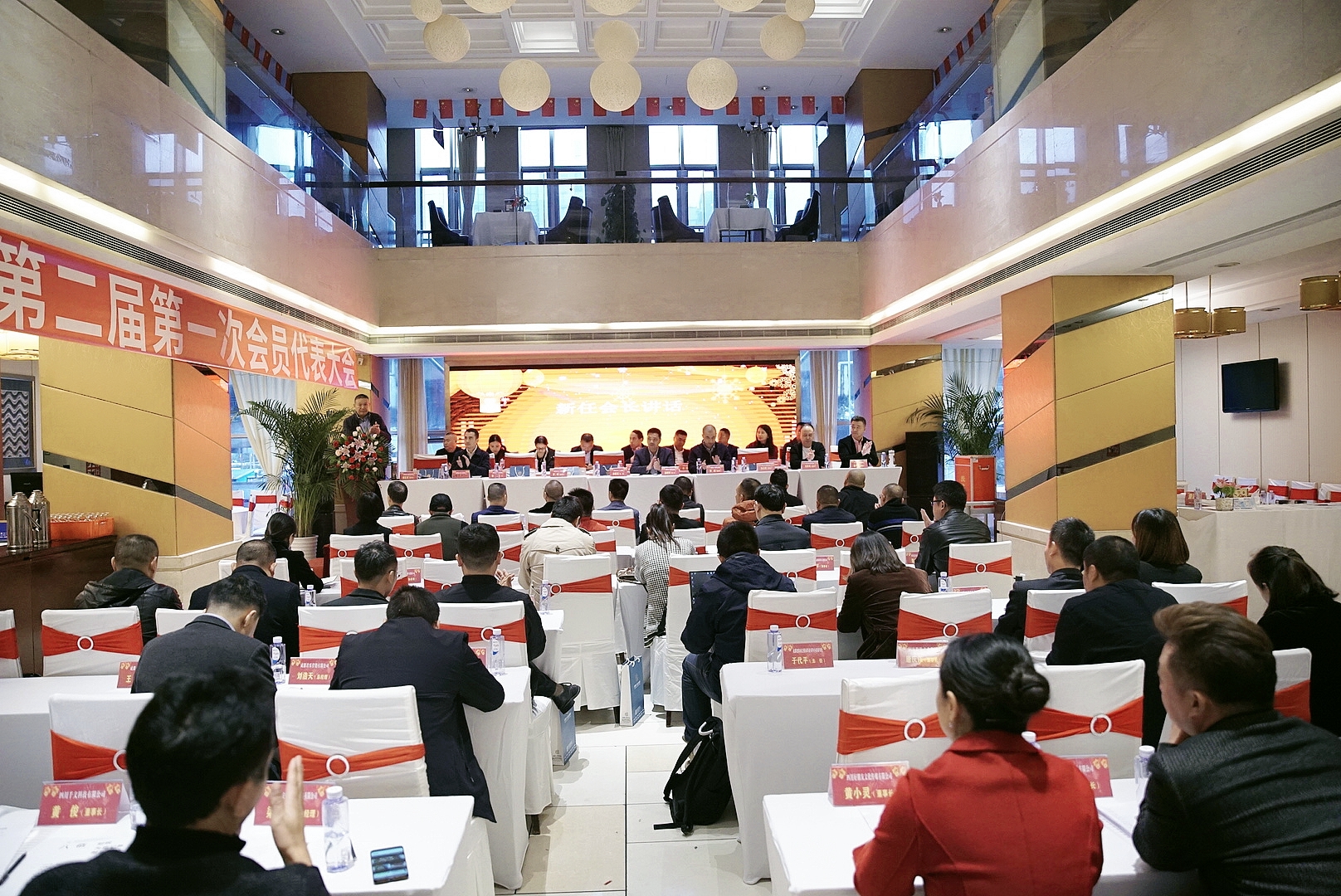 會議在雄壯的國歌聲中拉開序幕。換屆領導小組秘書長葛巨龍、財務負責人任靜、換屆領導小組組長陳榮虎依次就換屆選舉籌備工作情況發言,成都市工商聯會員處張粒副處長宣讀《關于同意成都德陽商會換屆的批復》。