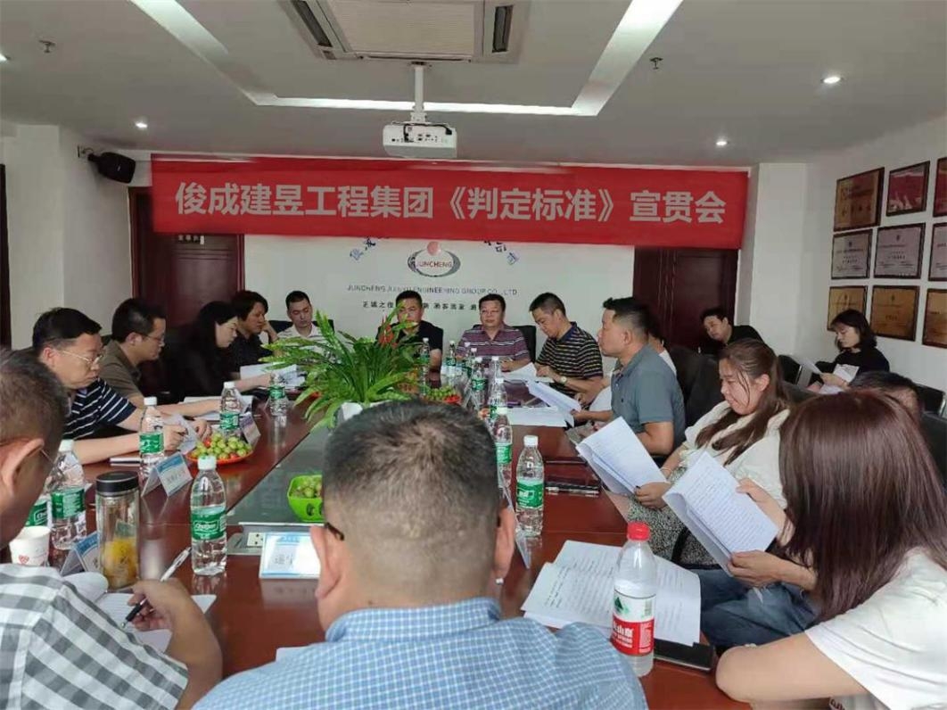 會(huì)后,各分公司及項(xiàng)目部陸續(xù)開(kāi)展了《判定標(biāo)準(zhǔn)》的宣貫學(xué)習(xí)。以監(jiān)理部牽頭,召集各項(xiàng)目建設(shè)單位、施工單位等參建單位對(duì)《判定標(biāo)準(zhǔn)》進(jìn)行了逐條逐句認(rèn)真學(xué)習(xí),然后對(duì)標(biāo)本項(xiàng)目工地進(jìn)行逐項(xiàng)摸排整改。截止目前,公司各在建項(xiàng)目對(duì)《判定標(biāo)準(zhǔn)》的宣貫學(xué)習(xí)基本完成。